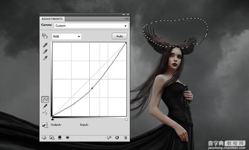 4.2 使用曲线【调整图层】来变暗乌鸦,使用柔软的黑色笔刷在图层蒙版中减去头部和翅膀的亮部